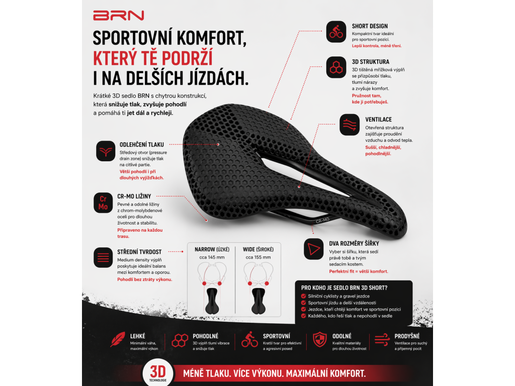 Speciálně tvarované sedlo pro jízdu a horském kole. Sedla BRN Memory Foam Flow jsou novou generací sedel BRN, jejichž cílem je zajistit maximální pohodlí při jízdě na kole.