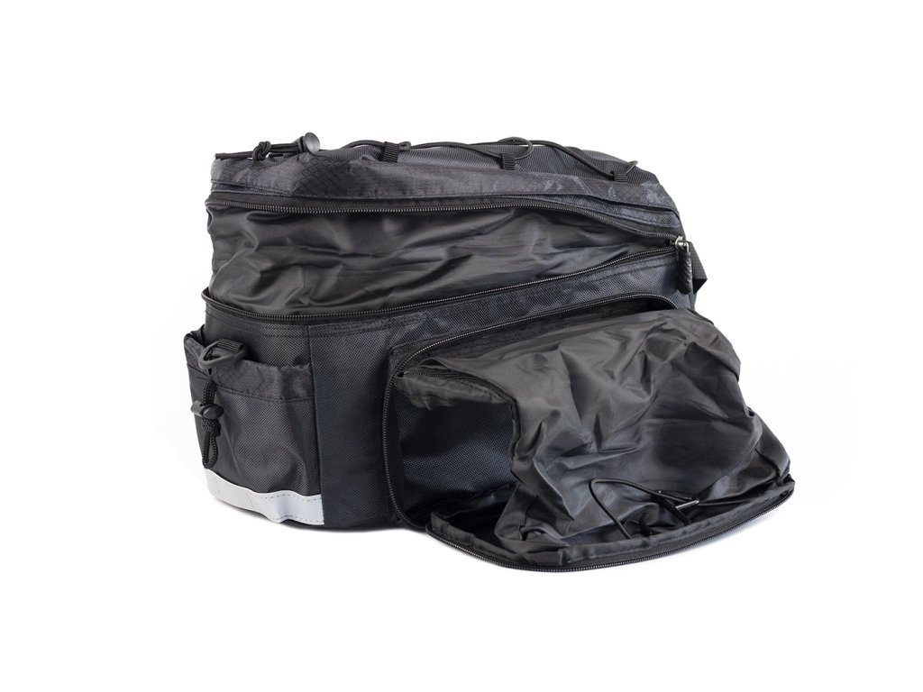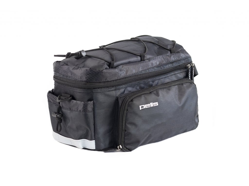 Prostornou brašnu na zadní nosič PELLS Loculo s možností dalšího rozšíření objemu rozepnutím zipu oceníte na dlouhých cyklovýletech. Model má jednoduchou montáž pomocí suchých zipů, lze ho sundat z nosiče a pohodlně přenášet díky přiloženému popruhu a chlubí se dostatkem kapes pro uložení drobnějších předmětů.