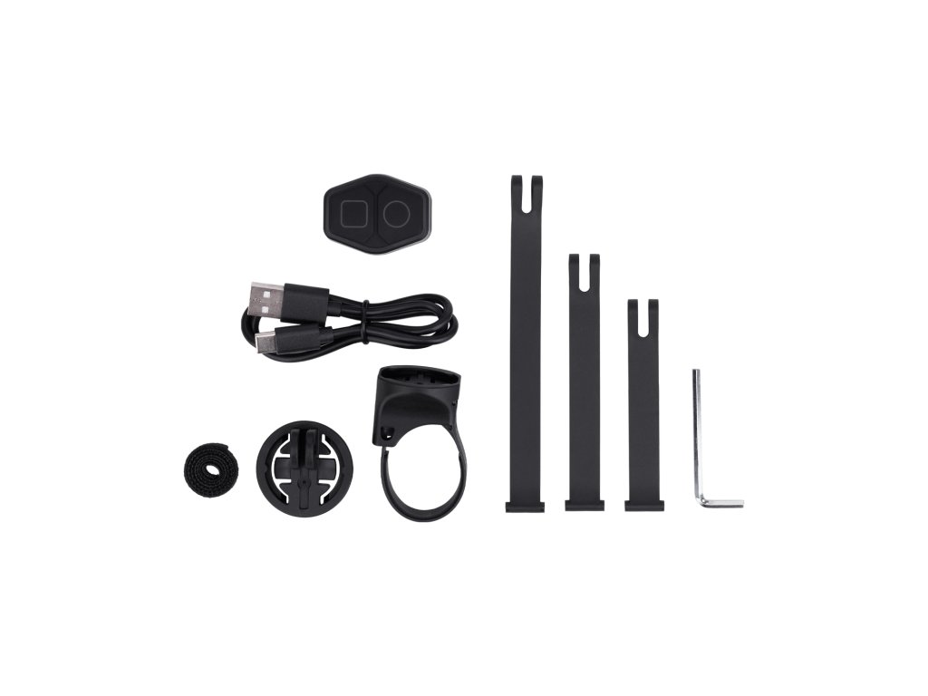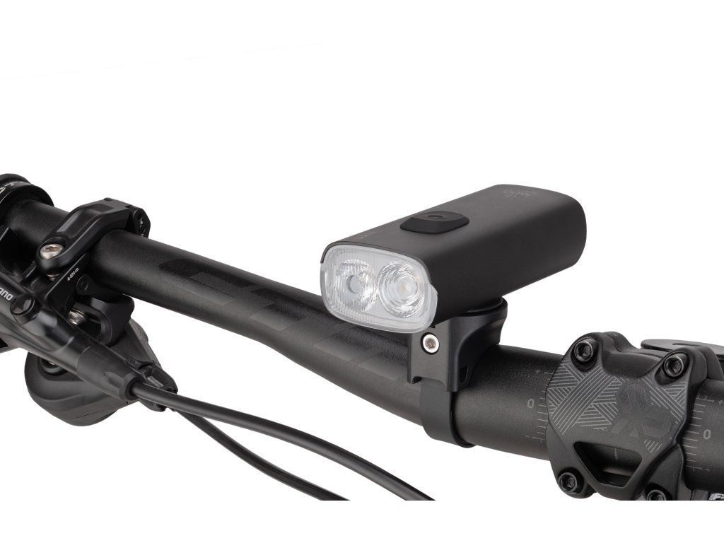 Přední výkonné osvětlení s možností dobíjení přes USB-C; Svítivost: 1600 lumenů (2x Luminus SST-40-WCS-F50-P2/N5); Nová dvojitá čočka s širokým záplavovým paprskem na blízko v kombinaci s dálkovým bodovým paprskem je ideální pro použití na silnici i na trailech; Dálkový ovladač na řídítka pro snadnější ovládání funkcí; Funkce powerbanky (5V 2A); Lehká a kompaktní konstrukce z prémiového hliníku; Dosah světelného paprsku 140 m s neoslňujícím rozptylem; Funkce: záplavové světlo (13%-25%-50%) – hybridní (dálkové) světlo (25%-50%-100%) - denní blikání (0%-100%) - noční blikání (25%-100%); Výdrž baterie podle režimu: záplavové světlo 13% (10:00h) – 25% (4:30h) – 50% (3:00h) / hybridní (dálkové) světlo 25% (4:30h) – 50% (3:00h) – 100% (1:30h) / denní blikání (12:00h) – noční blikání (2:30h); Voděodolné IPX7 do hloubky 1 m; Paměť režimů; Baterie 21700 s 3,6V 5400 mAh s indikátorem stavu baterie a dobou dobíjení 2,5 hodiny; Přepínání mezi režimy dvojklikem vypínače, mezi jasem kliknutím a vypnutí/zapnutí podržením vypínače; Krátké stlačení vypínače aktivuje indikátor baterie (pokud je světlo vypnuto); Univerzální montáž pro různé průměry řídítek (25,4-35mm) se základnou Garmin (kompatibilní); Balení obsahuje USB-C kabel, dálkové ovládání, základnu na řídítka s vyměnitelnými pásky, Gopro destičku, 3mm klíč; Rozměr: 96x41x27 mm; Váha: 190 g; Barva: černá