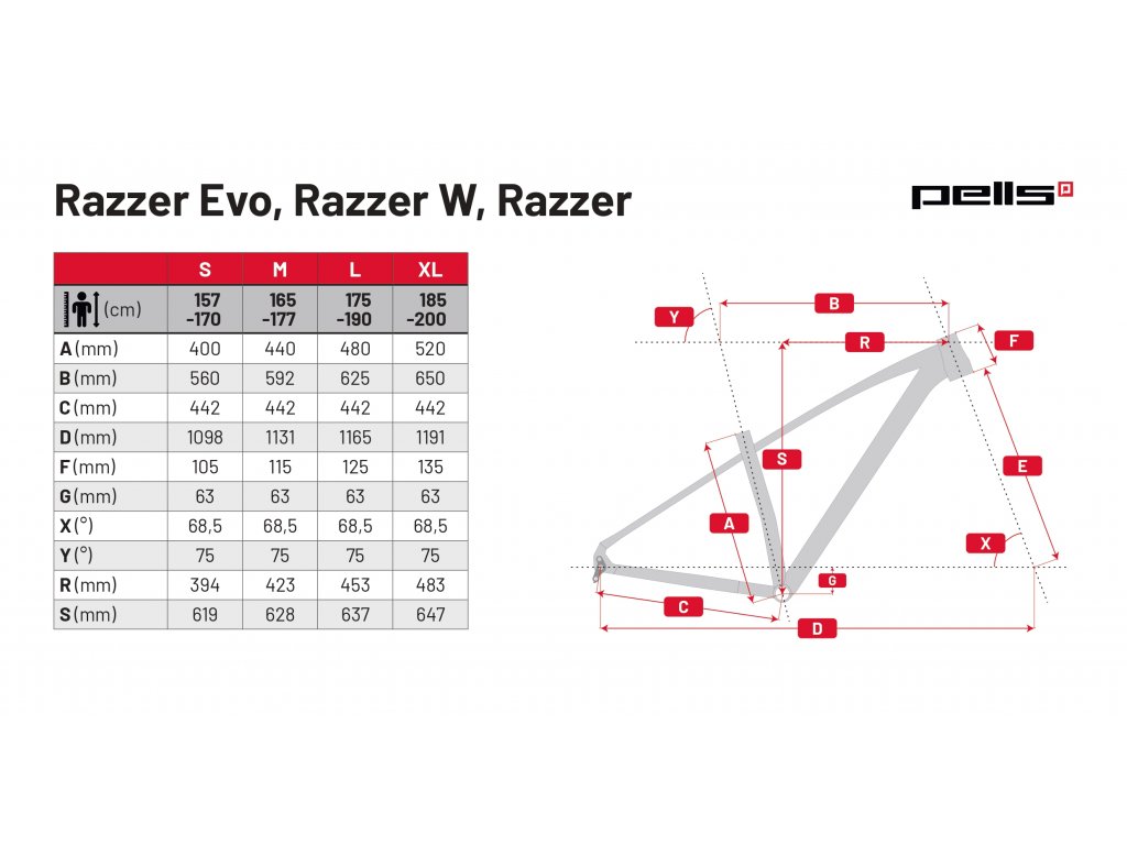 Nejklasičtější klasika. Dostupné horské kolo s širokou škálu využití – od kondiční jízdy přes rodinné výlety až po cesty do práce – Razzer 3 si poradí se vším. Lehký hliníkový rám Pells Alloy, vzduchová vidlice SR Suntour XCR32 Air se zdvihem 100 mm, komponenty Shimano (Alivio) a pláště Continental Race King 29/2,2 jsou zárukou dobrých jízdních vlastností a spolehlivosti v každé situaci.