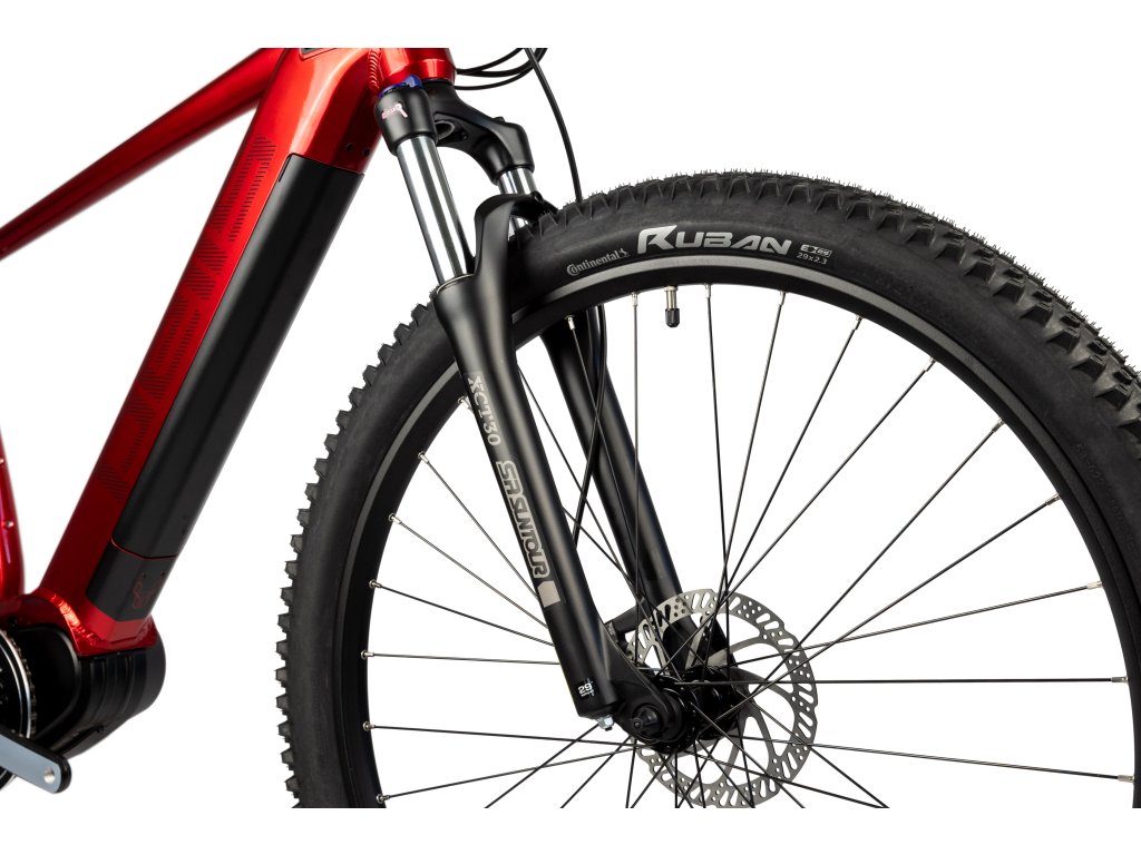 Přepracovaný model elektrokola Pells Base nabízí zcela nový rám s plně integrovanou baterií s kapacitou 504 Wh a osvědčeným středovým motorem Bafang M400. Ten nabízí 5 úrovní přípomoci a díky torznímu senzoru přesně dávkuje dodávaný kroutící moment až 80 Nm. Nástup výkonu tak přesně odpovídá potřebám jezdce a nedochází k nežádoucímu “kopání”. Navíc lze motor přepnout do režimu chůze, který oceníte například při tlačení kola do prudkého kamenitého kopce. Vnitřní vedení bowdenů nechá naplno vyniknout čistý a jednoduchý design celého rámu. Pro zajištění co nejlepších jízdních vlastností a spolehlivého přenosu výkonu bez ohledu na povrch jsme zvolili kvalitní pláště Continental Ruban. Výbavu modelu Thorr Base dále doplňuje pohon Shimano Alivio 1x9, hydraulické brzdy Tektro HDM-285 a odpružená vidlice SR Suntour XCT 100 mm.