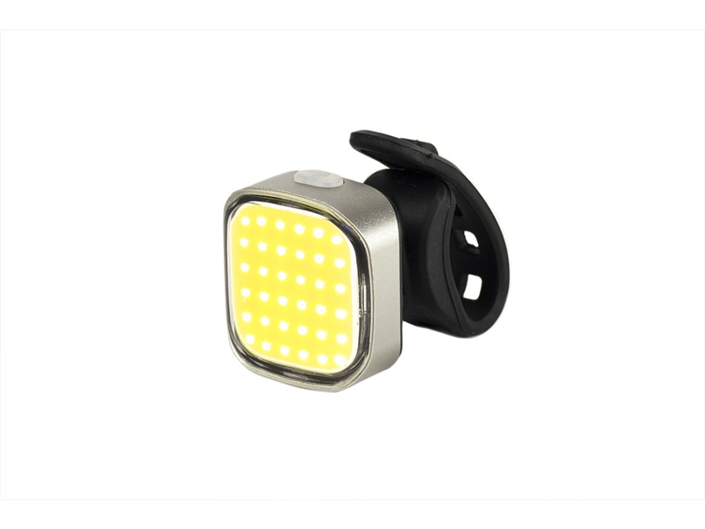 PELLS Squaro Front je výkonné přední světlo s 36čipovou LED diodou se světelným výkonem 80 lumenů, které bez nutnosti dobíjení přes výměnné baterie šetří životní prostředí. Má dva režimy svícení a tři režimy blikání pro vaši bezpečnou jízdu. Manipulace i dobíjení je jednoduché. Jeho odolné a lehké tělo uchytíte pomocí gumového pásku a dobijete přes nabíjecí micro USB kabel. Výdrž baterie při maximálním výkonu je až 2 hodiny, v režimu blikání až 7,5 hodiny.