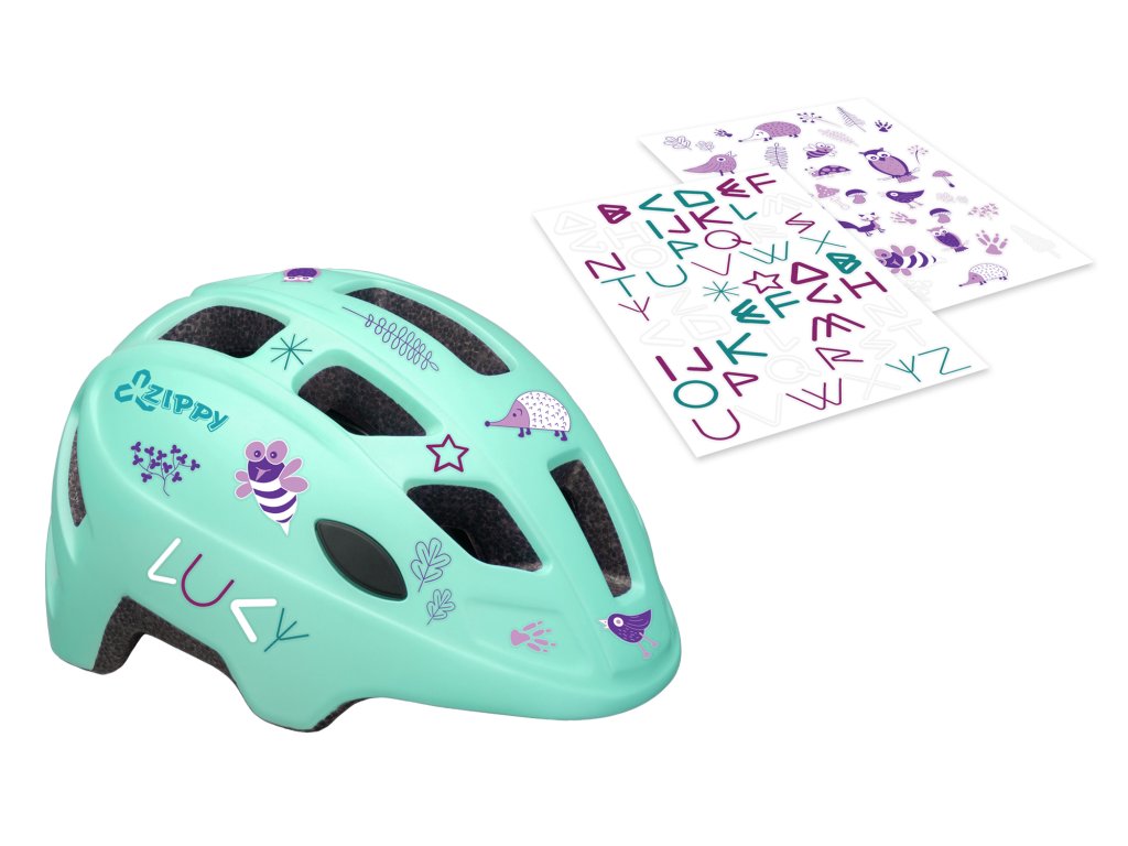 Pohodlné výstelky a nastavitelné řemínky; Balení obsahuje sadu samolepek pro mladé cyklisty, kteří si mohou kreativně přizpůsobit design; Hmotnost: 210 g; Velikost: S (48-52 cm); Barva: morská zelená