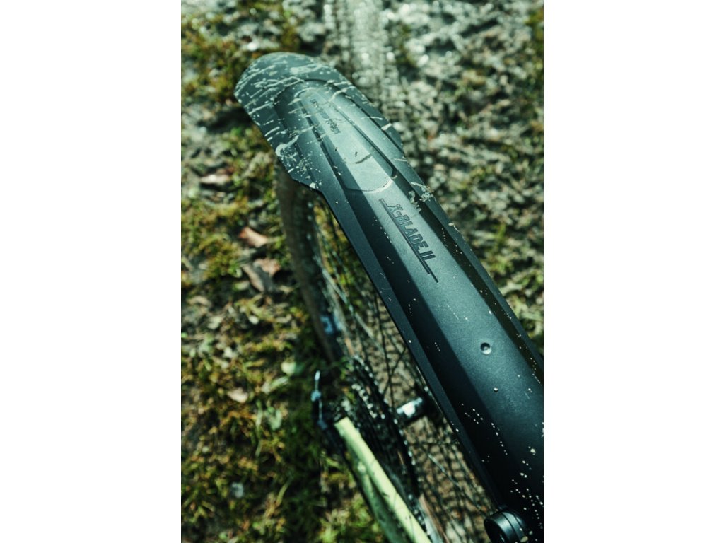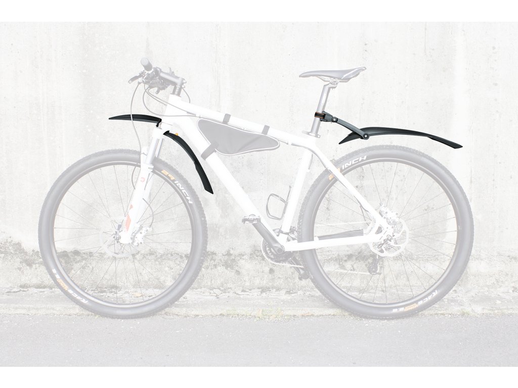 Sada blatníků SKS Shockblade a X-Blade pro 29 palcová a plusková 27,5 MTB kola v decentním černém barevném provedení. Rychloupínací montážní systém usnadňuje montáž blatníků do přední vidlice a na sedlovkou trubku. Součástí dodávky je pět kónických adaptérů mezi 15 a 35 mm do sloupku přední vidlice.